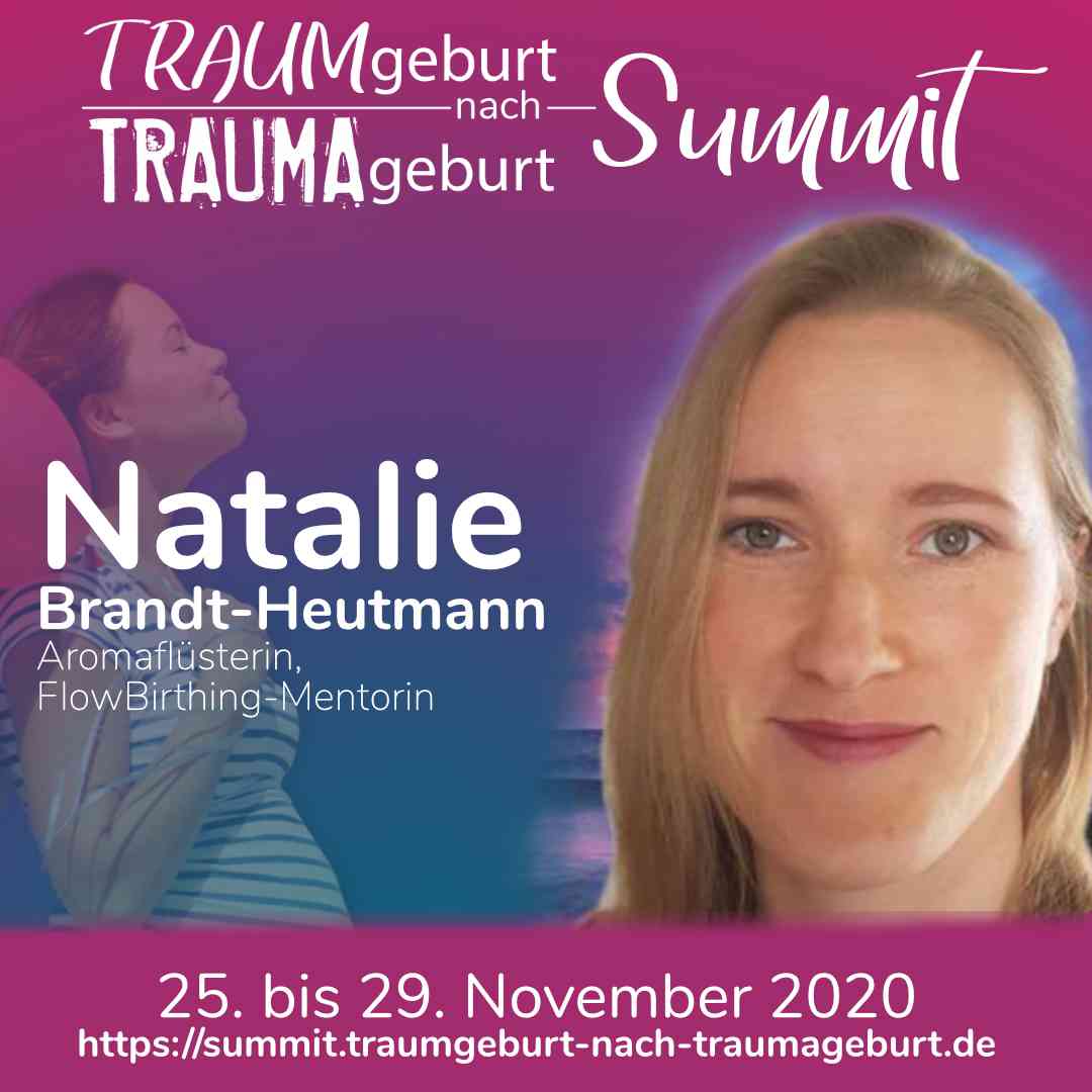 Heute habe ich dir ein Interview mitgebracht mit der Aromaflüsterin Natalie: „Begleitung mit Herz und Gespür für Mensch und Tier“ heißt ihre Begleitung und das ist die liebe Natalie Brandt-Heutmann, die sich in diesem Interview auch vorstellt als Speakerin von unserem Online-Shop Summit TRAUMgeburt nach TRAUMAgeburt. Dort findet ihr dann ein Video-Kurs zum Thema „Aromaöle – Du und ich unsere dufte Verbindung“. Also wie man die auch in einer Schwangerschaft einsetzen und für die Geburt nutzen kann. Das erklärt euch aber die Natalie jetzt in diesem Interview ist selbst viel Freude dabei.